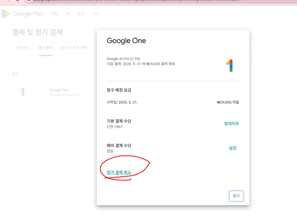 • Google 계정 > 결제 및 구독에서 관련 구독 상태 확인