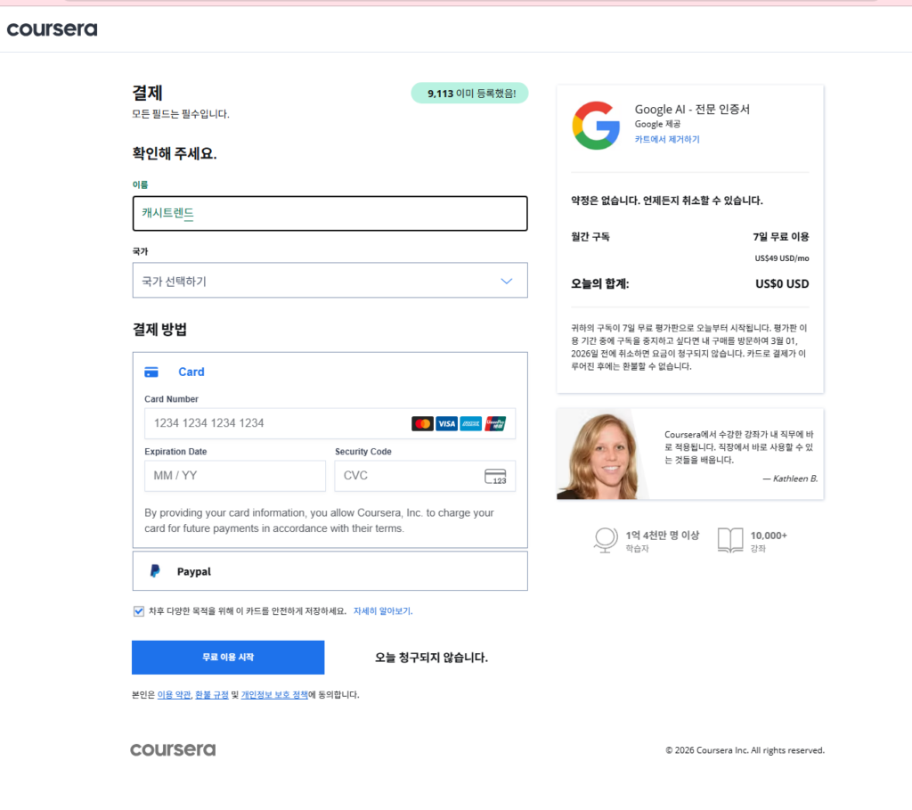 요즘 AI 경쟁으로 구글에서 제미나이 3개월 무료 프로모션이 있습니다. 원래는 Coursera 강의를 봐야하는데 우리는 그게 중요한게 아니죠! 강의 안보고 바로 무료로 사용할 수 있도록 준비했습니다. 바로 따라만 하세요!